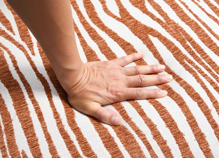 • Upholstered in Zebra-stripe Fabric
