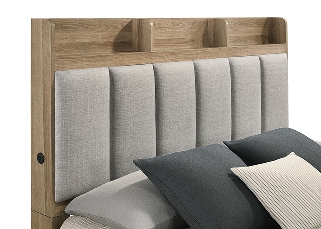 - Channeled Upholstered Headboard w/ Shelf